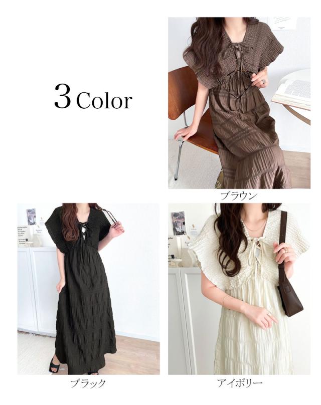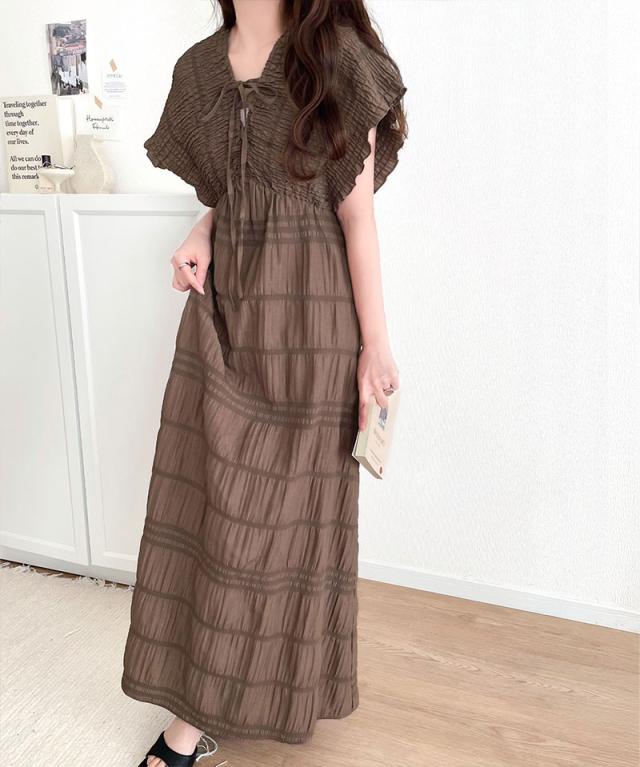 さらっとした着心地のマジョリカプリーツ生地のロングワンピース。