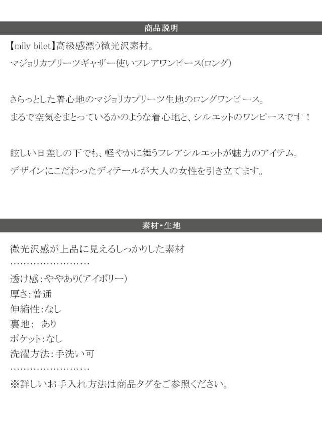 ★【mily bilet】高級感漂う微光沢素材。マジョリカプリーツギャザー使いフレアワンピース(ロング)★