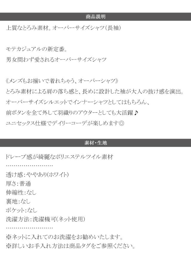 クラシカルエルフ春新作 トップス シャツ レディース とろみ素材 長袖 ポリ ツイル オーバーサイズド ブラウス 男女兼用 ユニセックス メンズ ゆるっと オーバーサイズ 羽織り ロングシーズン 大きいサイズ 2026ss ce1070141