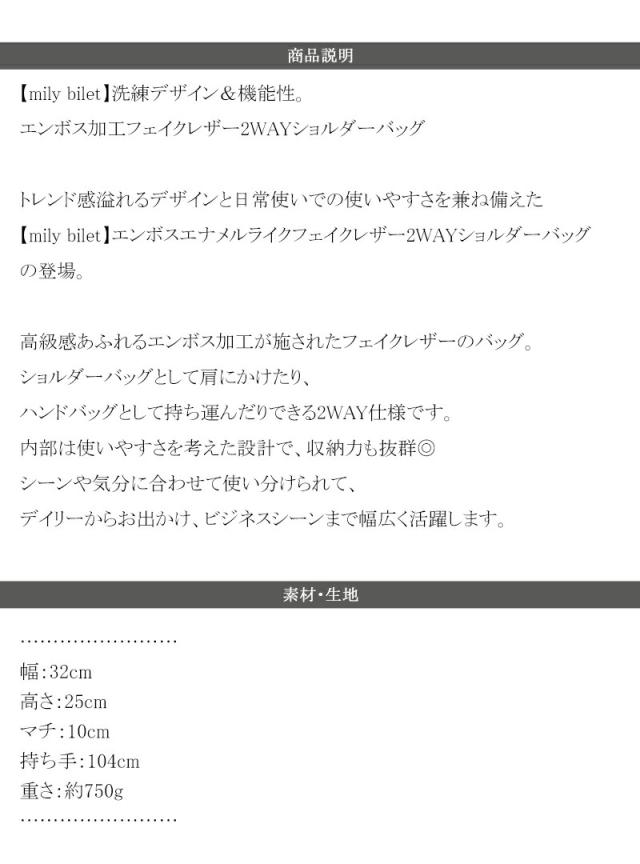 クラシカルエルフ冬新作 mily bilet バッグ ショルダーバッグ レディース エンボス 加工 フェイク レザー 2WAY ショルダーBAG 洗練デザイン & 機能性 デイリー おでかけ ビジネス 大きいサイズ 2025ss mi1159047