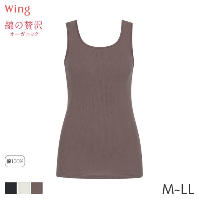 期間限定22%OFF ウイング 綿の贅沢 オーガニック リブタイプ ニットトップ ノースリーブ Uネック(M L LL)EL1161【メール便10】