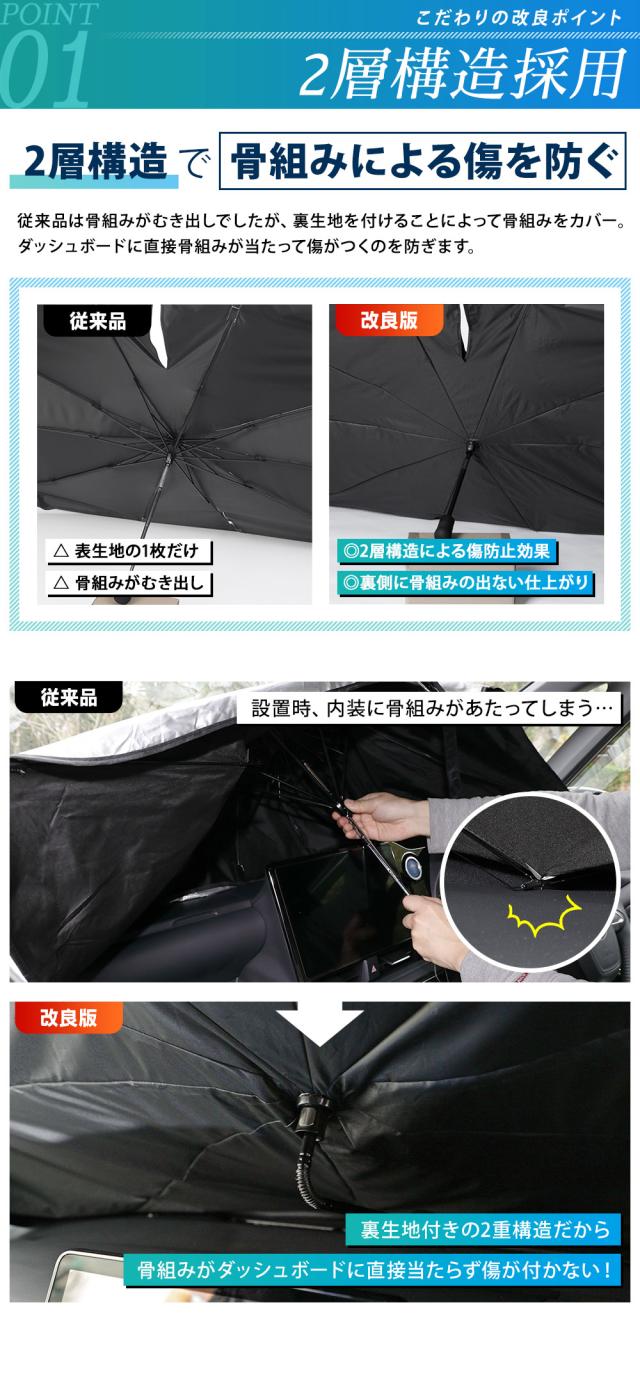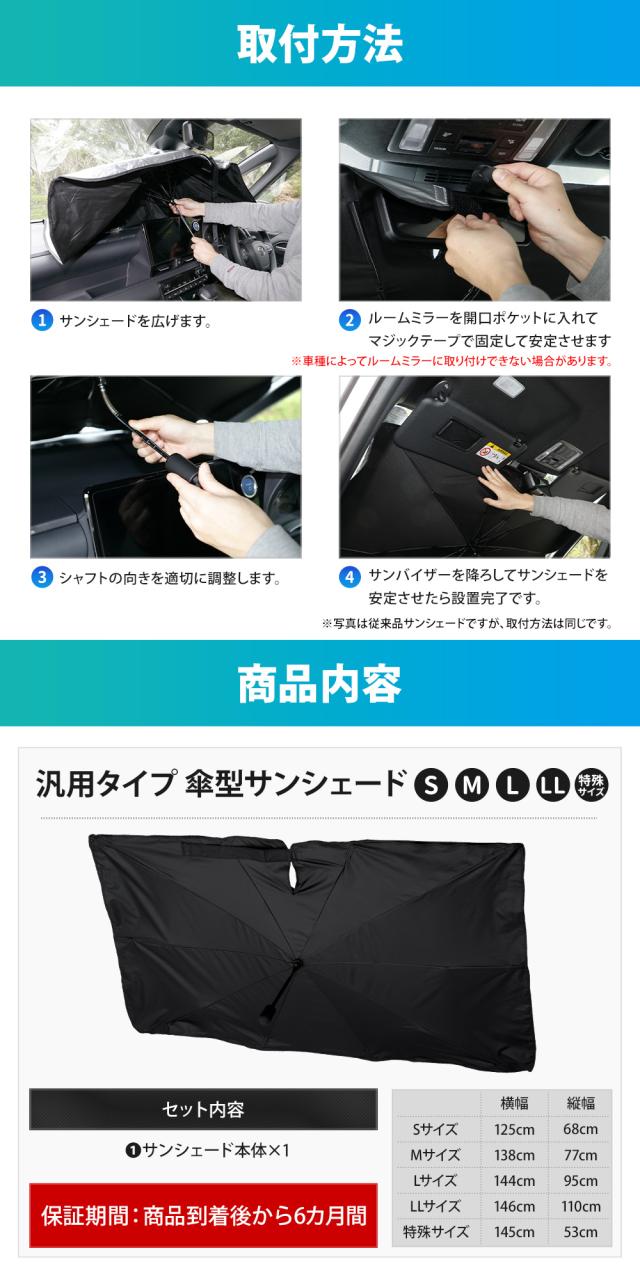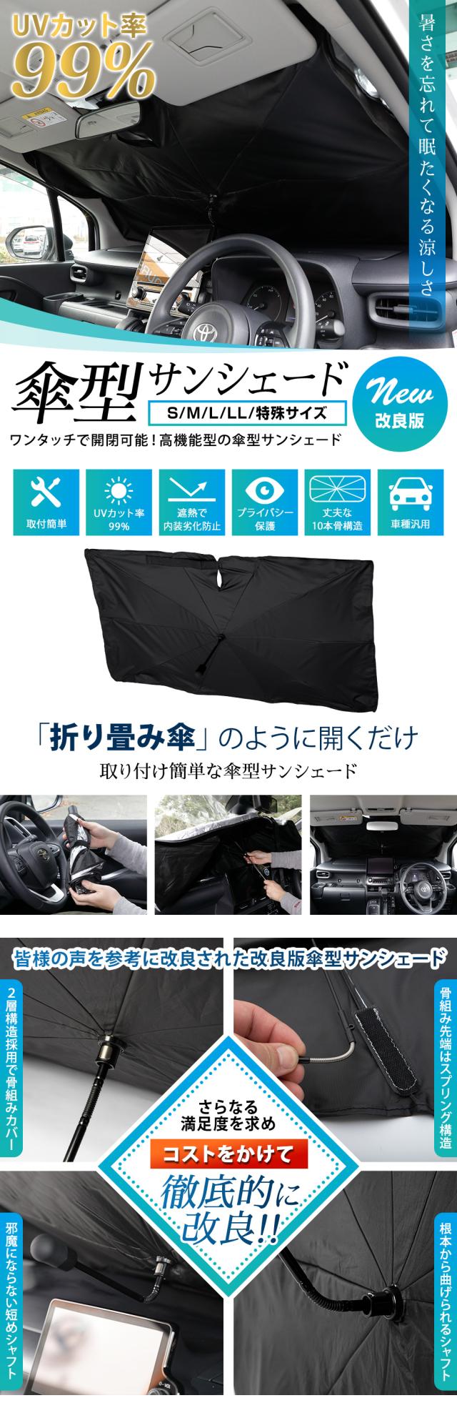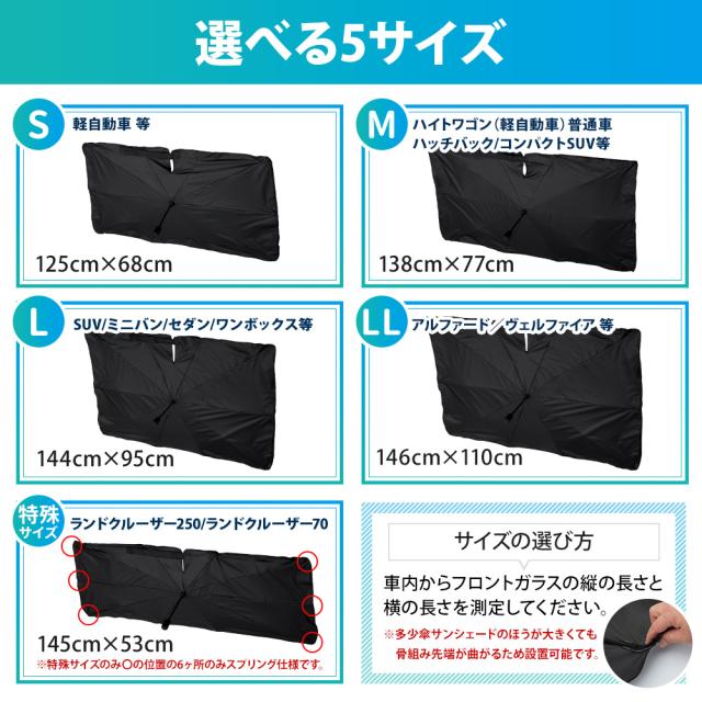 傘型サンシェード 選べる5サイズ S M L LL 特殊サイズ[改良版] [汎用] フロント用 uvカット 紫外線対策 遮光 車用 プライバシー保護 [2]