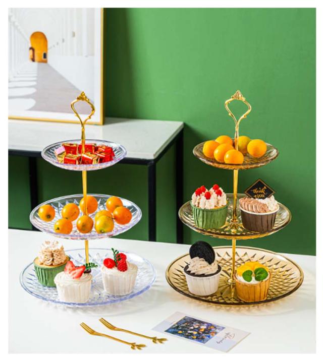 | ダイヤモンド3段ケーキトレイ レイヤードデザインにより、臭い移りを心配することなく果物やスナックを保管でき、一目で明確で取りやすいです。 ゴールドのハンドル、高級感とエレガントな外観、持ちやすい 高品質のPET素材を使用しており、手触りが快適で、お手入れが簡単で、より安全に使用できます。 | |