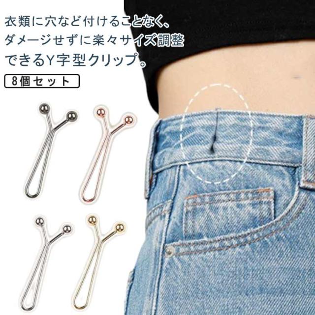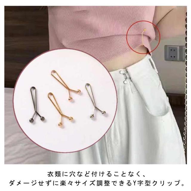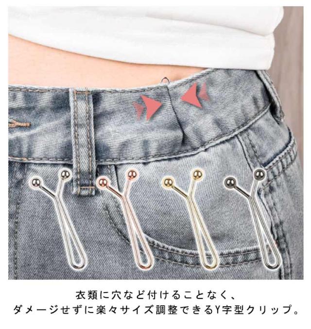 クリップ 挟むだけ ウェスト調節 挟むだけ アジャスター Y字型 クリップ サイズ直し ピン ズボンサイズ直し セルフウエスト調整 セルフお直し ジーンズ デニム Tシャツ
