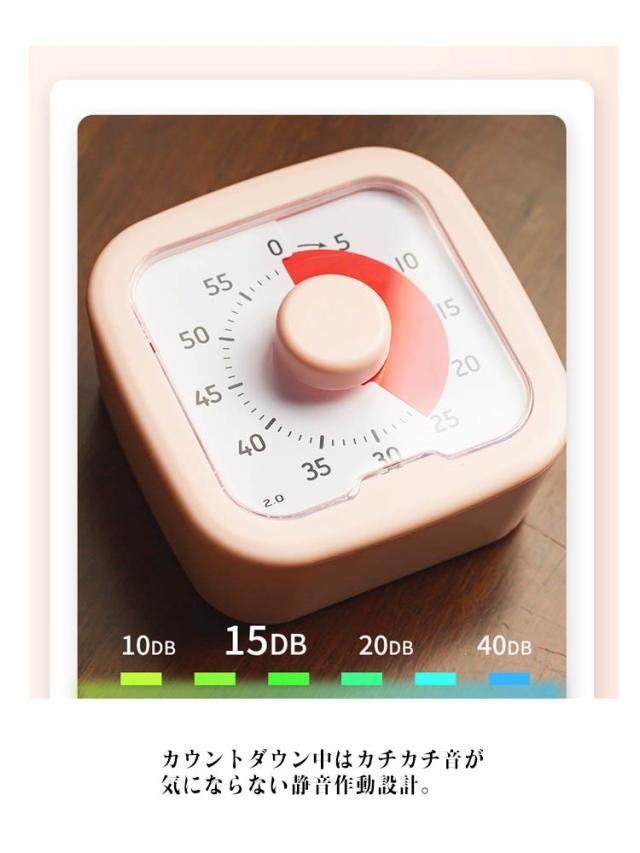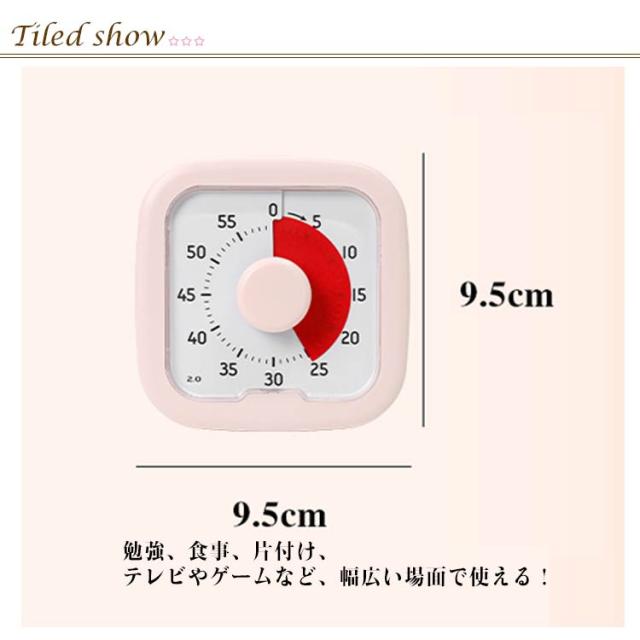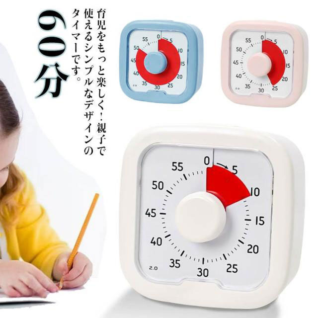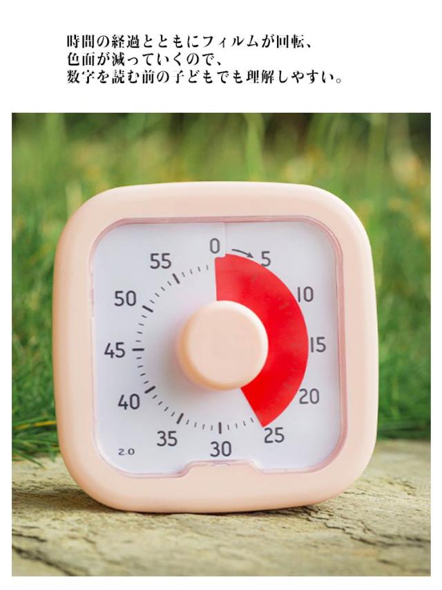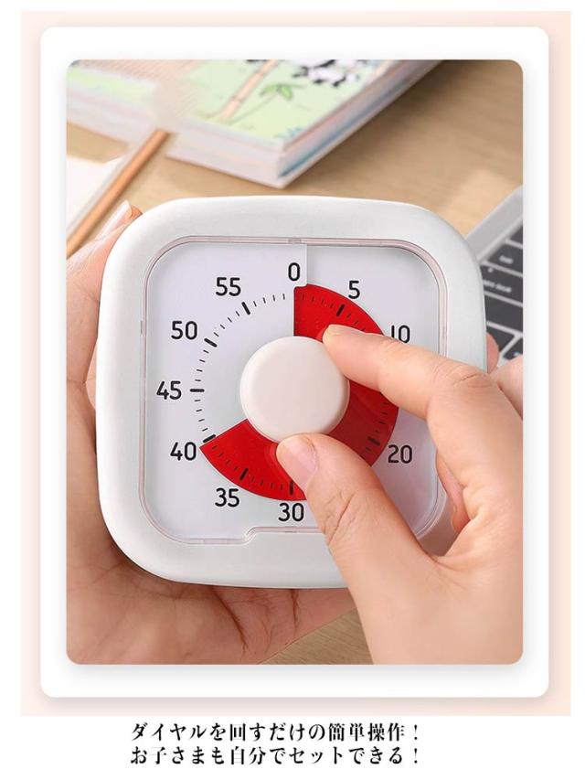 | 育児をもっと楽しく!親子で使えるシンプルなデザインのタイマーです。 ダイヤルを回すだけの簡単操作!お子さまも自分でセットできる! 時間の経過とともにフィルムが回転、色面が減っていくので、数字を読む前の子どもでも理解しやすい。 カウントダウン終了を「ピピピッ♪」の電子音でお知らせします。 カウントダウン中はカチカチ音が気にならない静音作動設計。 持ち運びやすいサイズだから、家中どこでも時間管理に大活躍。 勉強、食事、片付け、テレビやゲームなど、幅広い場面で使える! | |