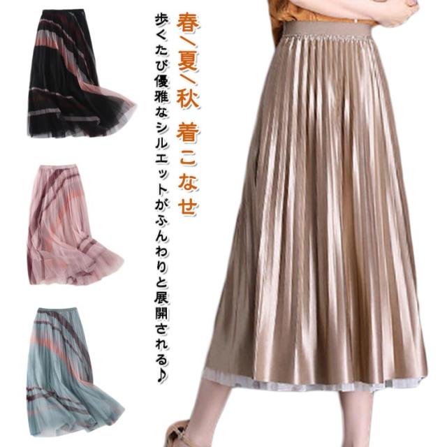 チュールスカート レディース ロングスカート ボリューム ロング スカート aラインスカート フレアスカート ボトムス ウエストゴム マキシスカート 黒 春 夏 秋 チュールスカート フレア チュール 体型カバー スカート 着こなせ
