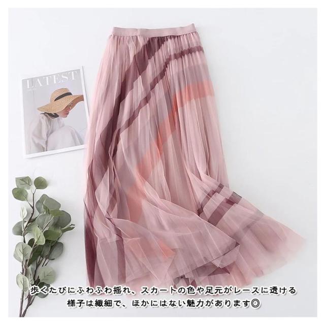 | 歩くたび優雅なシルエットがふんわりと展開される♪ ひらひら美しく揺れるチュールスカートが登場! 広がりすぎない、裾に向けて流れるようなシルエットが楽しめます。 上品でロマンチックな雰囲気でコーデが楽しくなる一枚です。 長さがあるぶん横への広がりが抑えられ、大人っぽく着こなせるのが特徴です 歩くたびにふわふわ揺れ、スカートの色や足元がレースに透ける様子は繊細で、ほかにはない魅力があります◎ ふんわり感と透け感が特徴で、今やファッションの定番アイテム 簡単オシャレ見えしてくれるので、これからの季節にとても着回しやすい | |