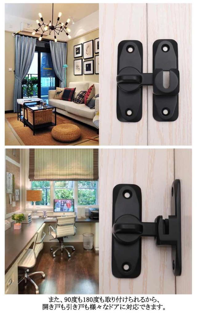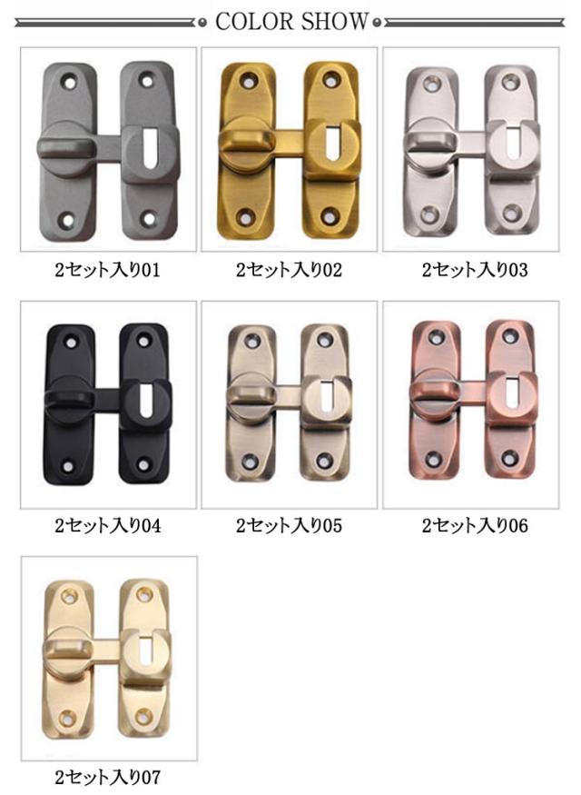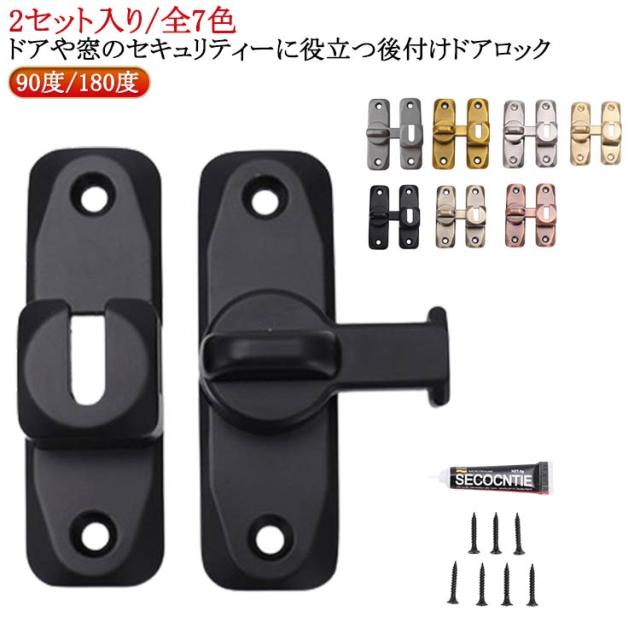 鍵 ドア留め金ロック 後付け 2セット入り/全7色 回転式 90度/180度 取り付け簡単 穴あけ不要 引き戸 ドアロック ドアバックル 後付け 亜鉛合金 フリップラッチロック スライディングドア 引き戸 鍵 ロック 耐震ラッチ 防犯 部屋 窓 玄関用