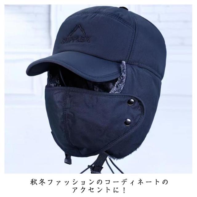 耳当て付き パイロット帽 フライトキャップ 防寒帽子 マスク付き カジュアル フェイクファー 帽子 もふもふ 飛行帽 裹起毛 ファー 防寒 秋冬 釣り あったか ゴルフ パイロットキャップ ふわふわ 遠足 スキー 雪遊び 登山 ブラック グレー