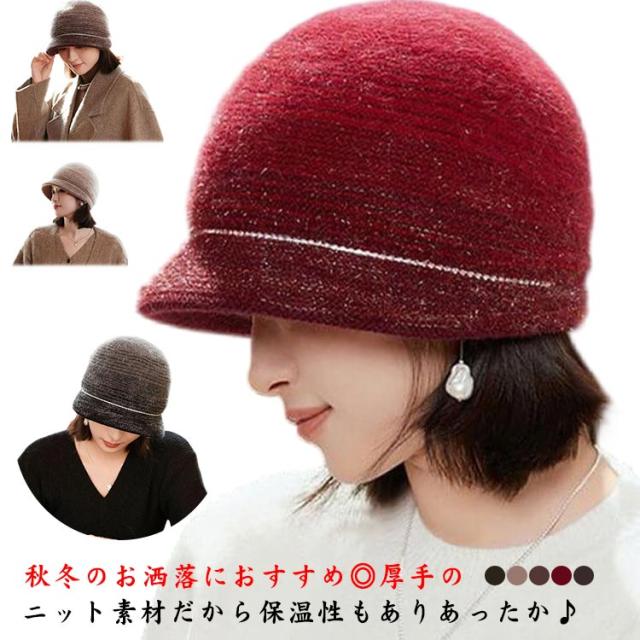 大人 レトロ おしゃれ レディース 秋冬 外出 ママ お母さん 帽子お母さん 買い物 ニット ウール 帽子 耳保護 防寒 アヒル 舌