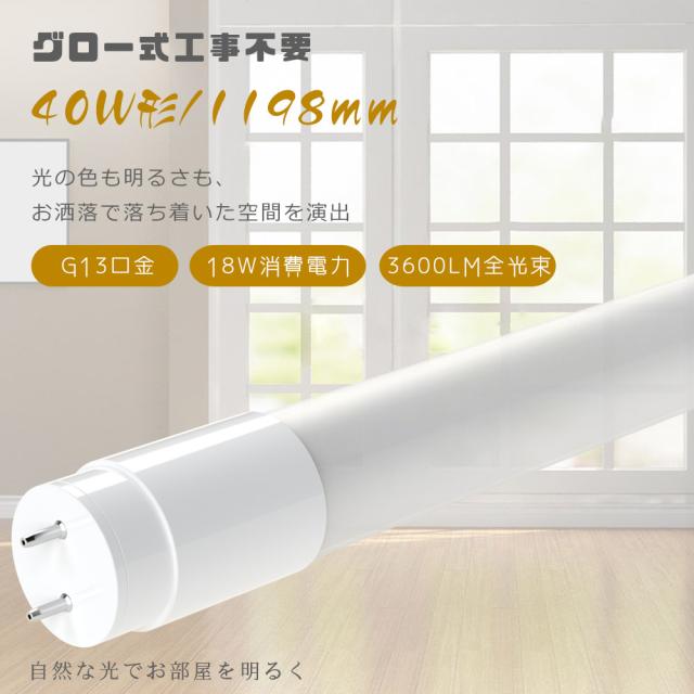 グロー式LED蛍光灯 T8 直管LEDランプ 1198MM グロー式専用工事不要 直管型LED蛍光灯 LED蛍光管直管 LED蛍光灯 40W形 直管 120CM 40W型 LED直管蛍光灯 40W形 FL40ss 消費電力18W 3600lm 直管LED照明器具 40形 LED蛍光灯 直管 40型 G13口金 天井照明 施設照明 店舗 学校 家庭