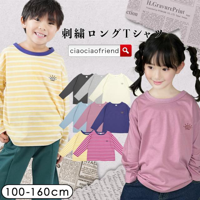 刺繍ロングTシャツ ロンT キッズ Tシャツ 長袖 子供服 男の子 女の子 長そで 長袖tシャツ 無地 春 秋 春服 秋服 通園 通学