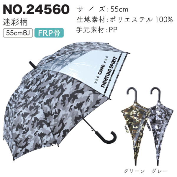 【3980円以上で送料無料】55cm 55センチ 学童子供傘 キッズ 丈夫なグラスファイバー製 窓付き ジャンプ傘 男児傘 男の子 24560 迷彩柄