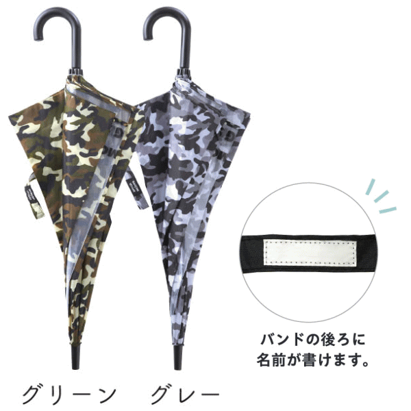 学校 幼稚園 保育園 置き傘 子供傘 こども傘 子ども傘 キッズ傘 かさ 雨傘 カモフラージュ柄 カモフラ柄 迷彩柄 グリーン色 グレー色