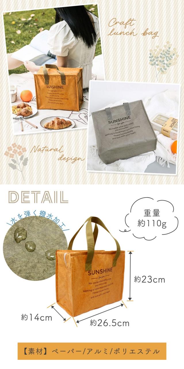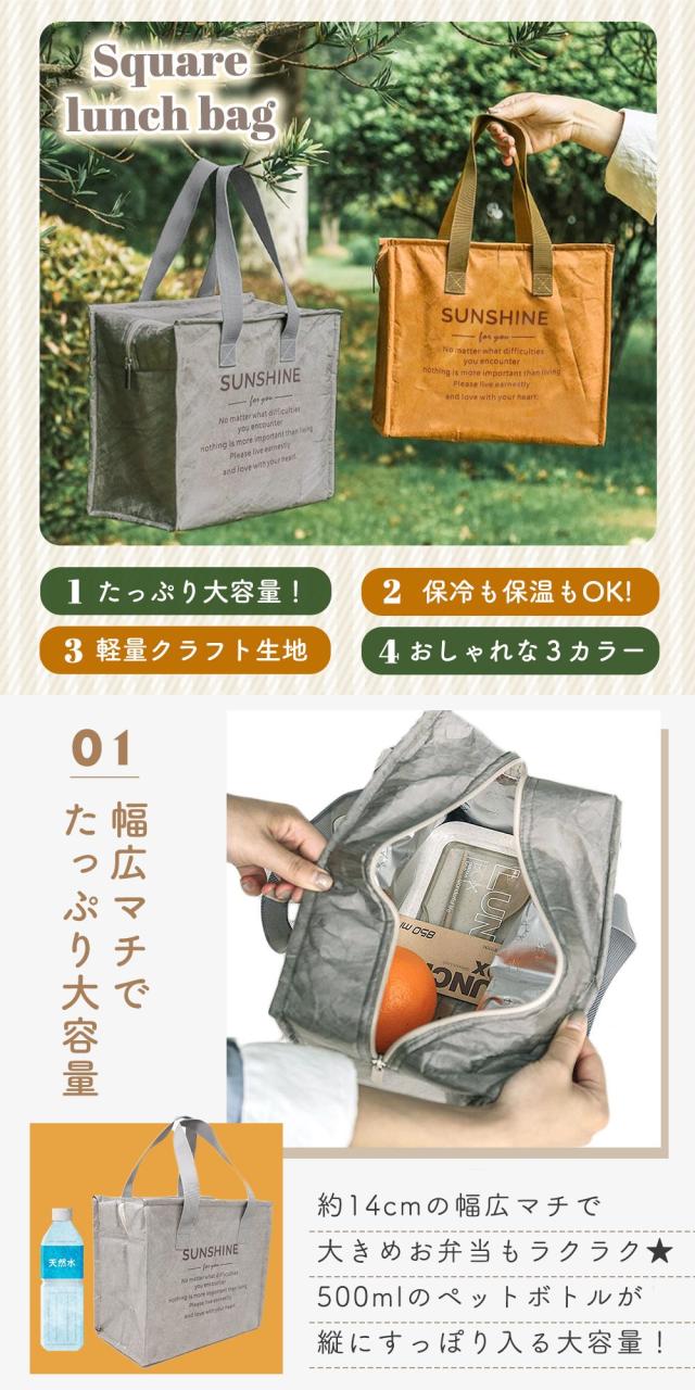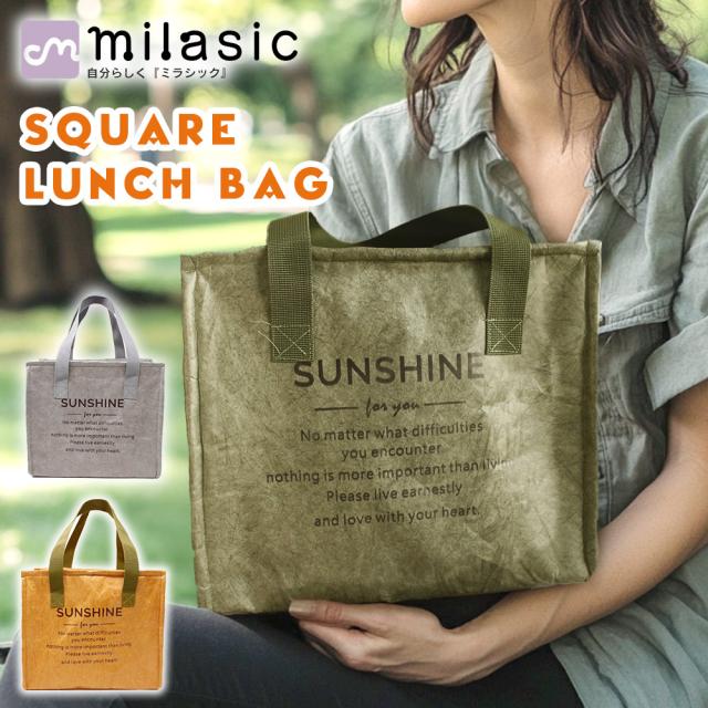 ランチバッグ スクエア 保温 保冷 大きめ 紙袋風 おしゃれ お弁当 保冷バッグ 弁当箱 お弁当入れ メンズ レディース マチ広 撥水 トート アウトドア キャンプ ピクニック 遠足 学校 オフィス 子供 大人 飲み物 ペットボトル 水筒 MILASIC ポイント消化