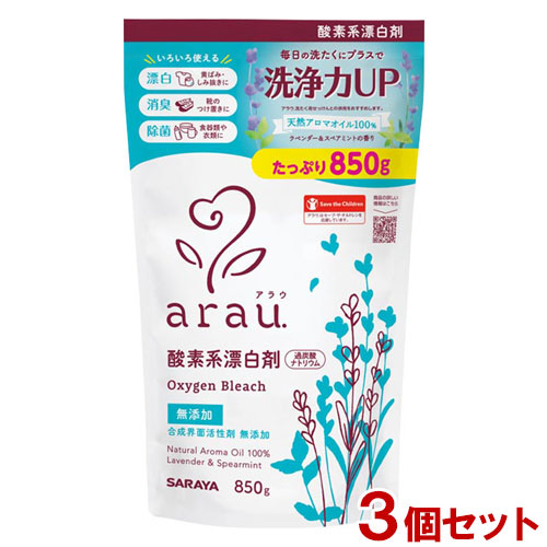 アラウ 無添加 酸素系漂白剤 850g×3個セット 色柄物の洗濯やしみ抜き・お子様のいるご家庭にも安心 arau. サラヤ(SARAYA)【送料込(北海道除く)】