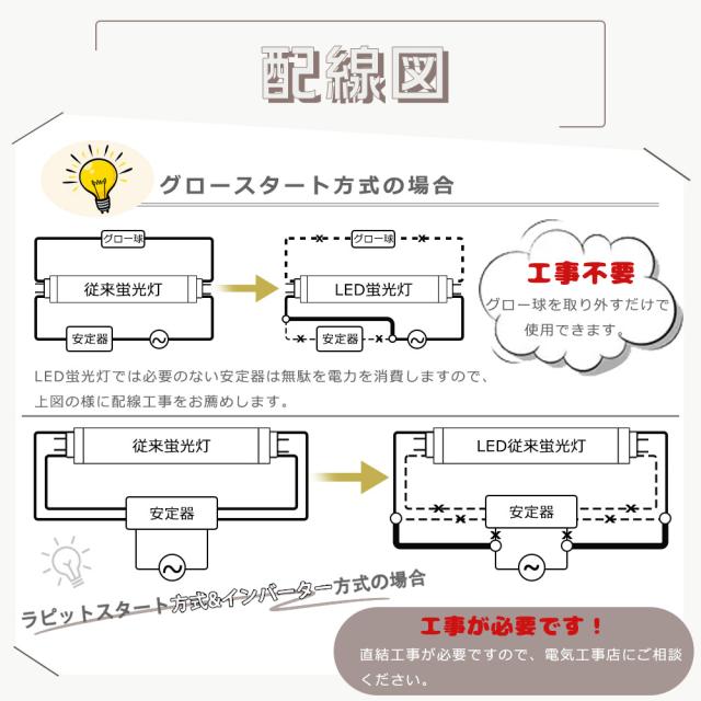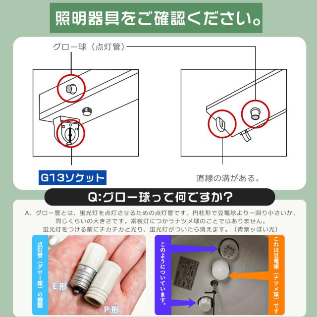 ★お使いの器具がグロースターター式の場合は、工事不要でグロー球を外すだけでご使用いただけます。