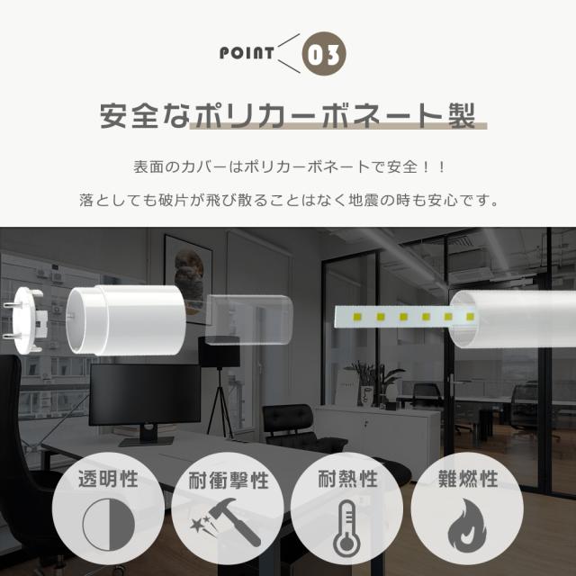 ★飛散防止フィルム加工、安全、安心.ガラスだからたわまない、従来の両側抑えるタイプ器具に最適.軽量設計で重量は通常のLED蛍光灯より軽く、器具からの脱落の可能性が低い。