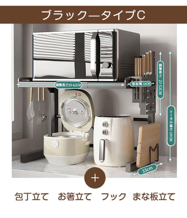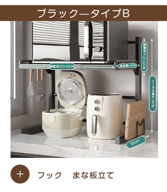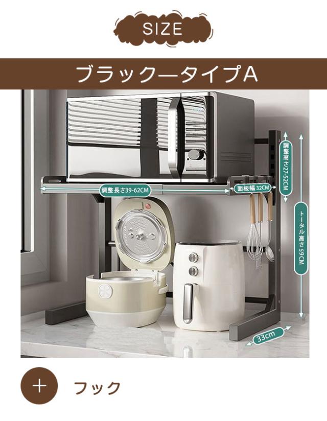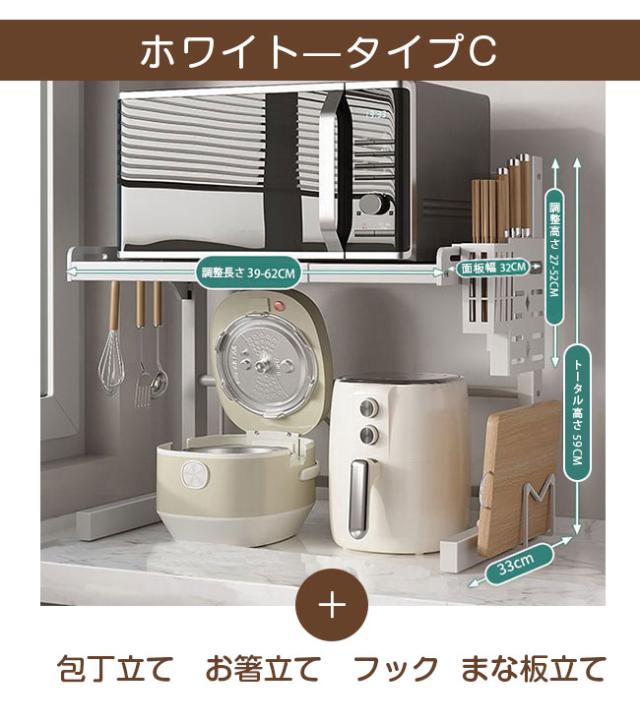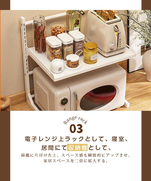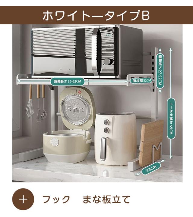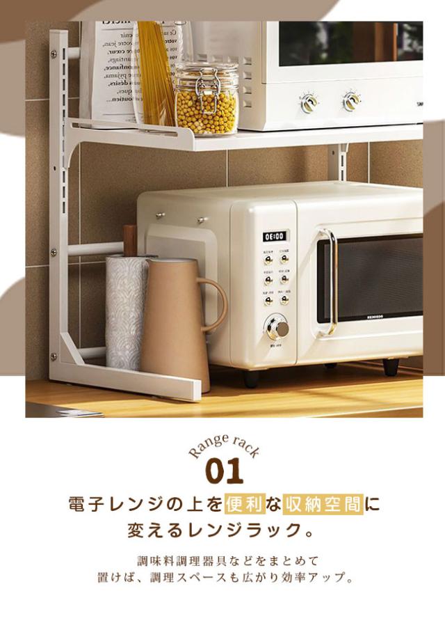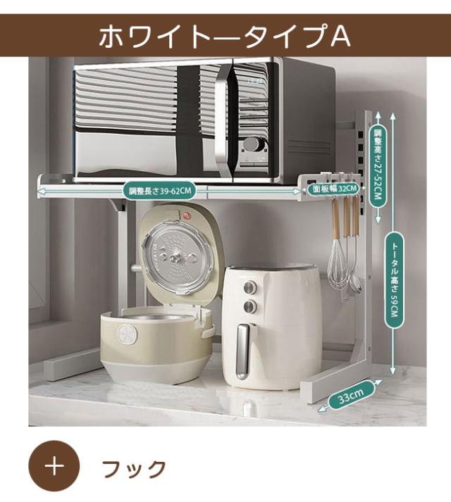 レンジ台 幅39-62cm 高さ27-52cm キッチン ラック レンジラック おしゃれ 伸縮 食器棚 トースター 炊飯器 シンプル 電子レンジ棚 北欧 伸長