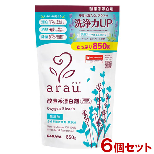 アラウ 無添加 酸素系漂白剤 850g×6個セット 色柄物の洗濯やしみ抜き・お子様のいるご家庭にも安心 arau. サラヤ(SARAYA)【送料込(北海道除く)】