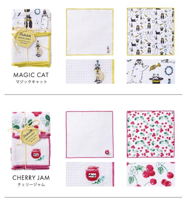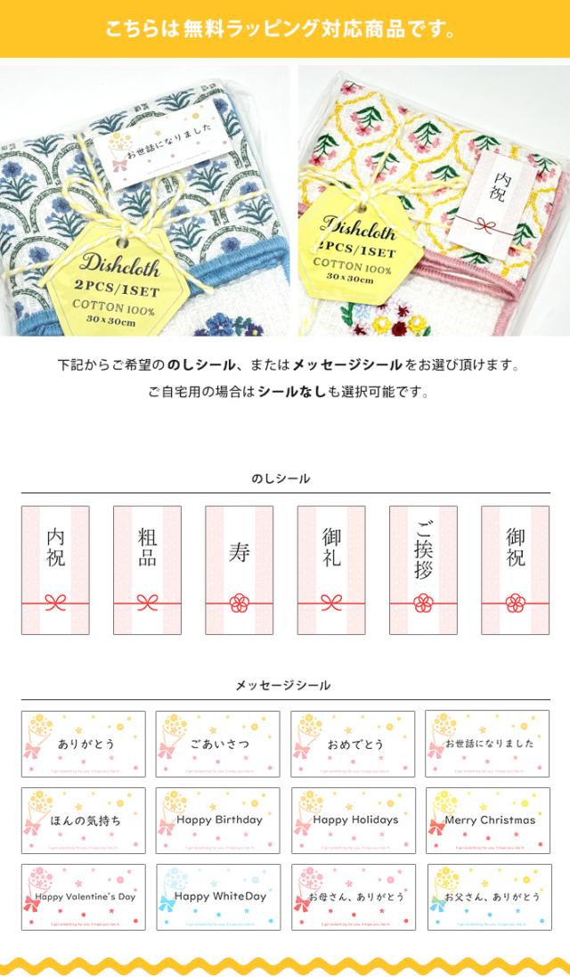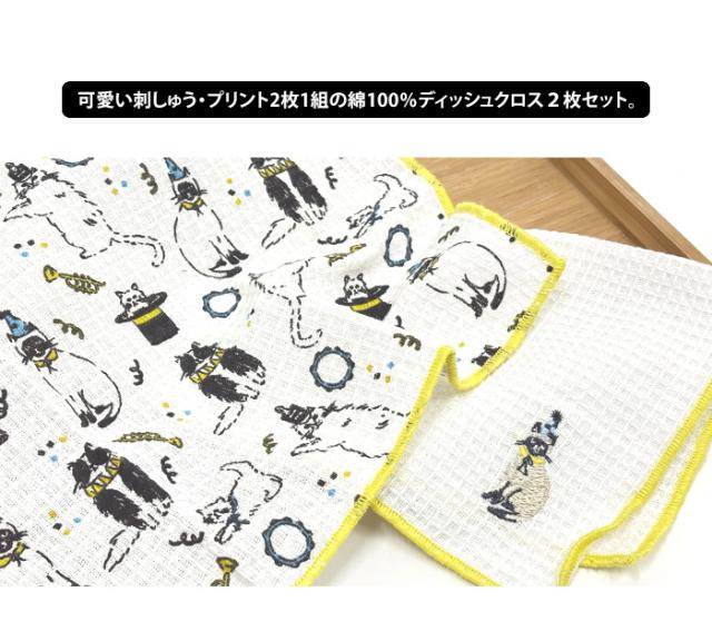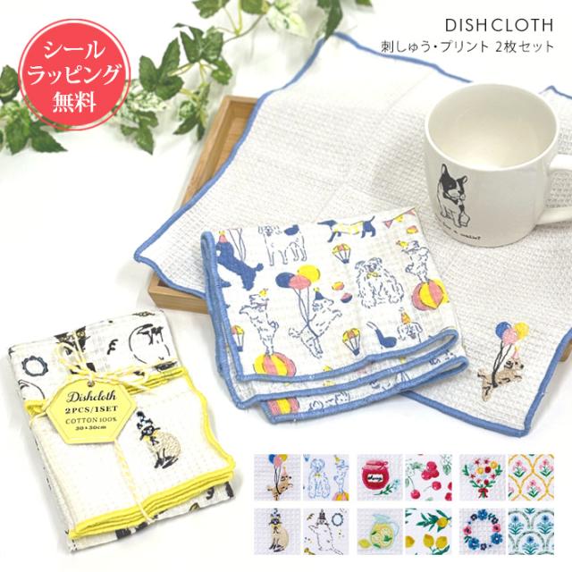 REP 刺しゅう・プリント ディッシュクロス 2枚セット 【 キッチンクロス カウンタークロス コットン 綿 布巾 ふきん プチギフト ワッフル 食器 拭き タオル 引っ越し 退職 転勤 挨拶 お礼 おしゃれ 内祝い 北欧 御礼 お返し ラッピング】