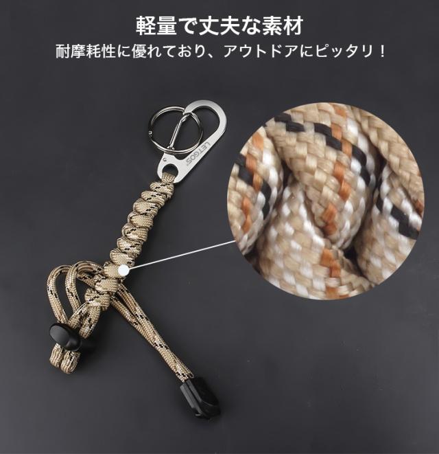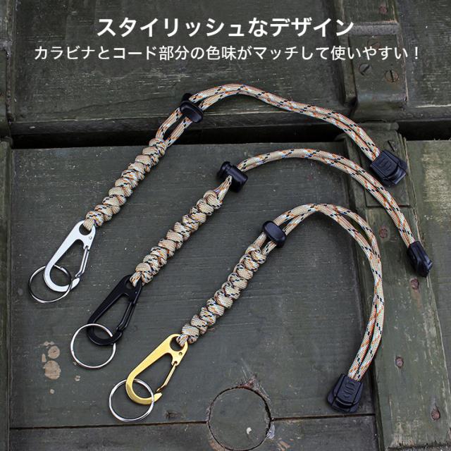 カメラストラップ パラコード アウトドア キャンプ キーホルダー カラビナ ストラップ 紐 キーリング ステンレス 鍵 持ち運び 取り外し 小物