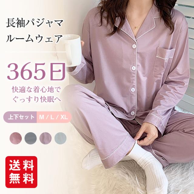 ふんわりさらっとした肌触りでゆるっとシルエットが可愛い長袖パジャマセット