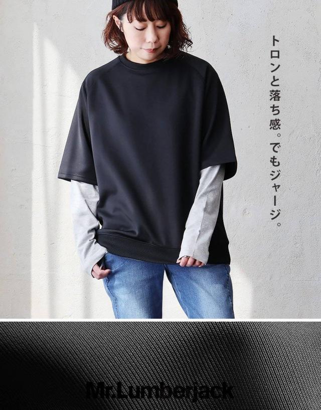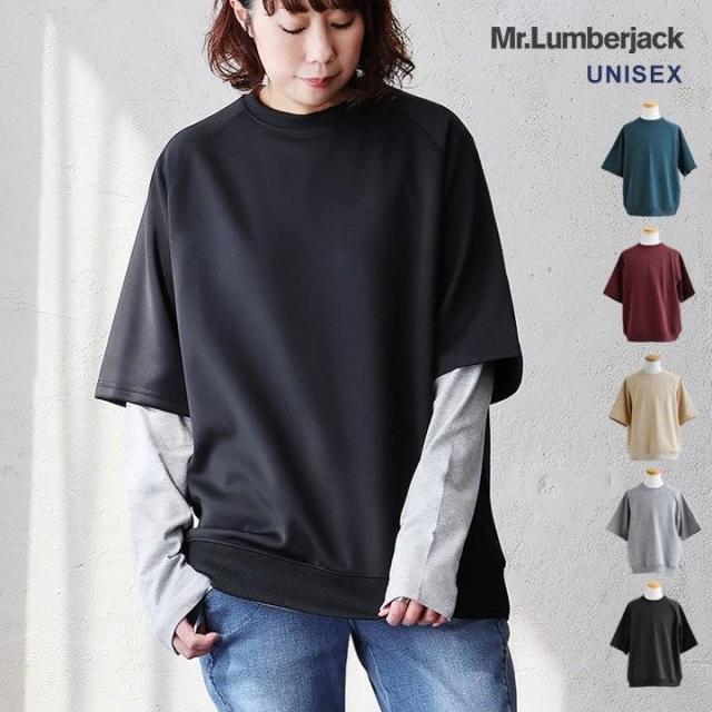 半袖 プルオーバー メンズ レディース 重ね着 5分袖 ジャージ 軽い 柔らか すっきり 着痩せ ワイド ストレッチ ゆったり 大き目 大人 カジュアル パティ Mr.Lumberjack ミスターランバージャック