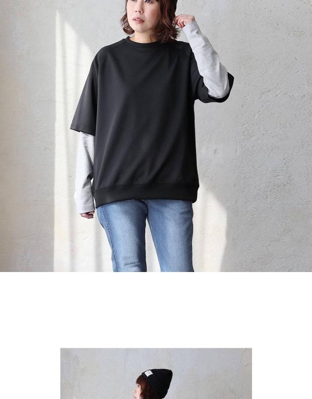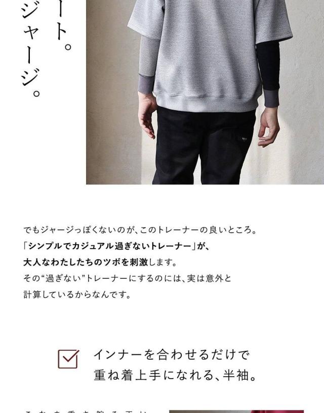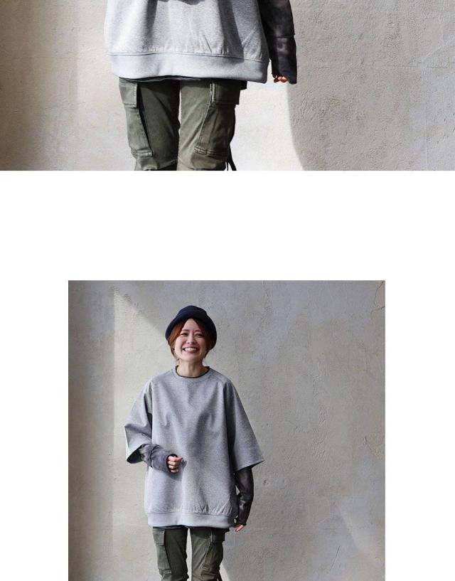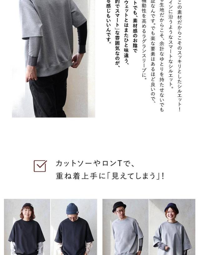 半袖 プルオーバー メンズ レディース 重ね着 5分袖 ジャージ 軽い 柔らか すっきり 着痩せ ワイド ストレッチ ゆったり 大き目 大人 カジュアル パティ