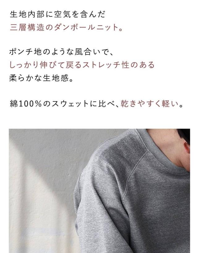 ・綿100%のスウェットに比べ、乾きやすく軽い。