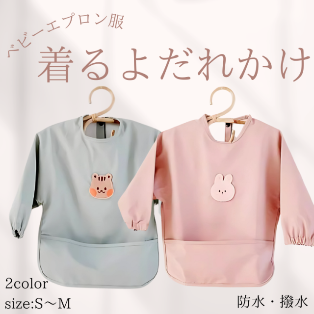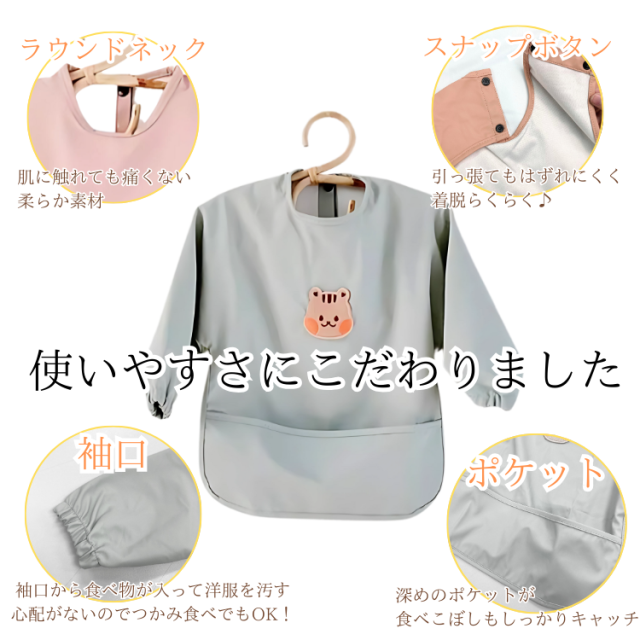 ベビー 着るよだれかけ スタイ 食事エプロン エプロン よだれかけ ポケット付き 防水 撥水 食べこぼし 洗濯可 入園 離乳食 保育園 幼稚園 スモック 長袖 赤ちゃん 新生児 子供用 男の子 女の子 掴み食べ ベビーエプロン 出産祝い