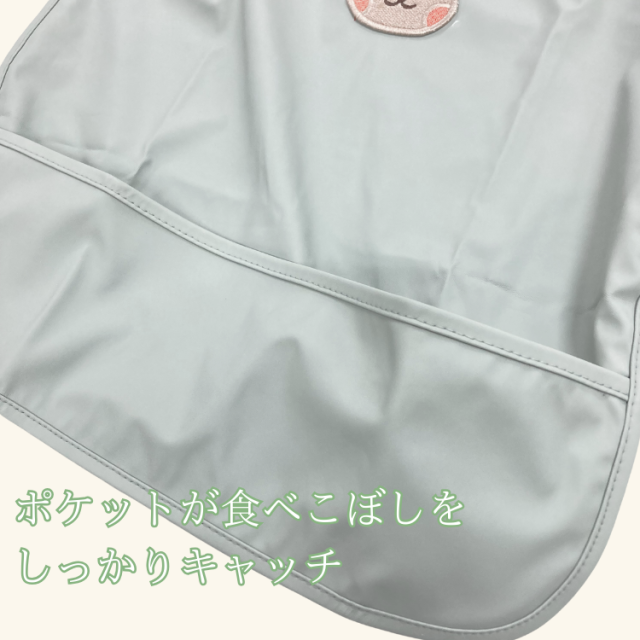 大きなポケットが食べこぼしをキャッチします♪