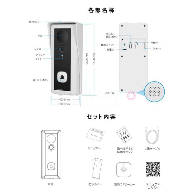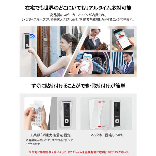 スマートドアカメラ Doorbell (Battery Type) ビデオドアベル ワイヤレスインターホン DB6 スマートインターホン 充電式 工事不要 配線不要