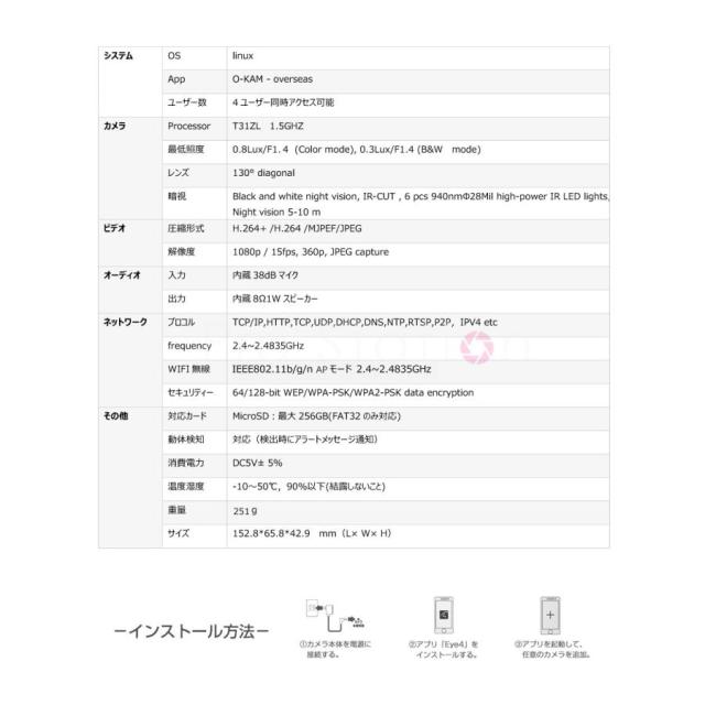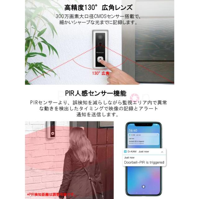 ?300万画素の超高精細130°広角レンズは2304x1296画質で撮影?録画が可能です。