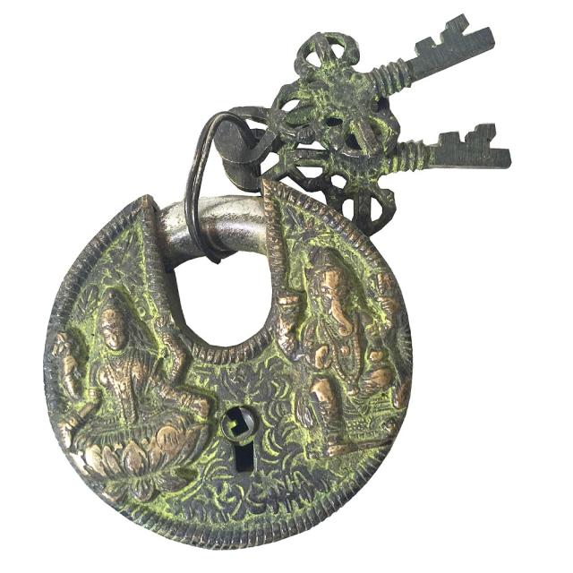 ネパールの南京錠!ガネーシャとラクシュミモチーフの南京錠です。とても存在感のある作りです。お部屋の装飾としても◎