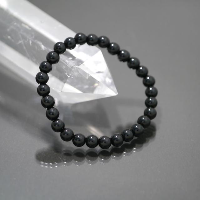 鑑別書付1点物 高品質黒水晶 モリオン 6mm 内径 手首周り 14cmブレスレット 天然石 除障石 厄除け 破魔