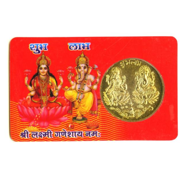 インドの神様ガネーシャとラクシュミのカードタイプ金運アップお守りです。財布に入れて金運アップを願掛けしてください。