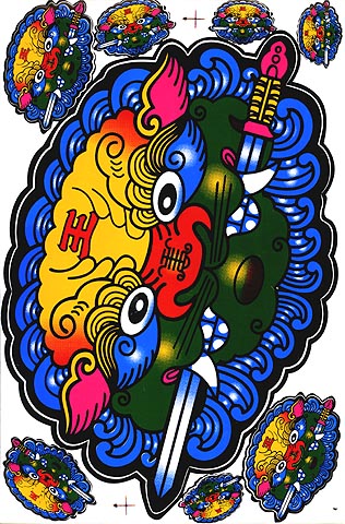 タイの珍しい巨大ステッカーその11 エスニック アジアン雑貨 剣獅子の魔除け ポスト投函配送選択可能です