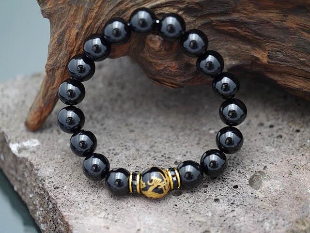 ワンポイント金彫龍オニキス12mm オニキスAAA 10mm ブレスレット 天然石 ポスト投函配送選択可能です