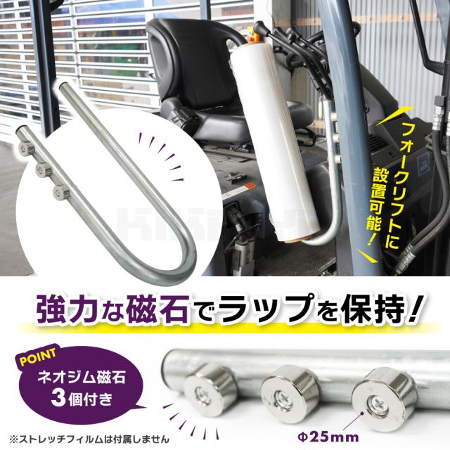 マグネット ラップ ホルダー 強力 ストレッチフィルムホルダー フォークリフト ハンドリフト ラップホルダー ストレッチフィルム 梱包 業務用 収納 整理 KIKAIYA