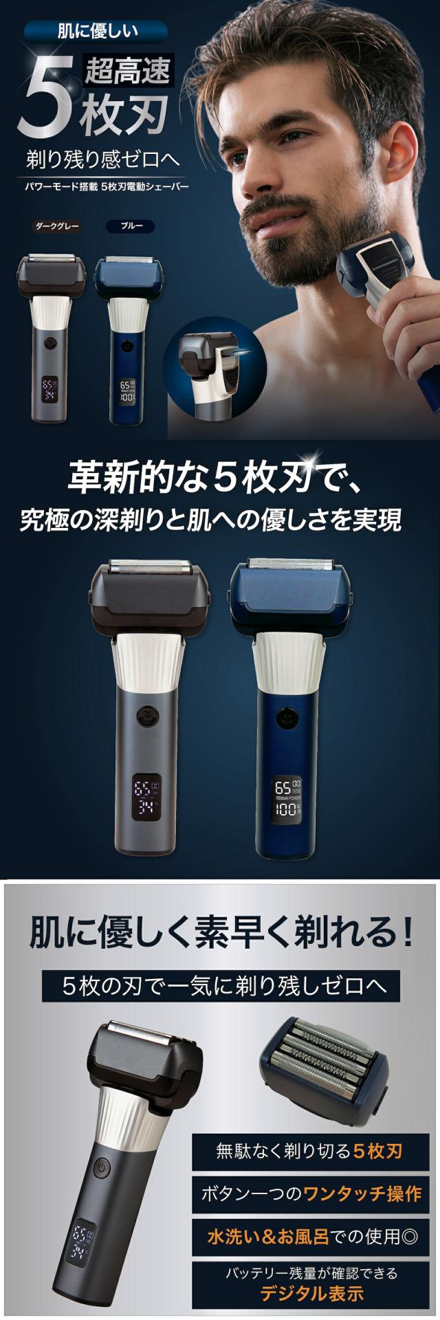 髭剃り シェーバー メンズシェーバー 電気シェーバー 電気カミソリ パワーモード搭載5枚刃電動シェーバー 電動シェーバー 電気かみそり 電気剃刀 お風呂ソリ ひげそり ヒゲソリ 電動 男性 丸洗い可能 深剃り 回転刃 回転式 充電式 防水 出張 携帯 ギフト
