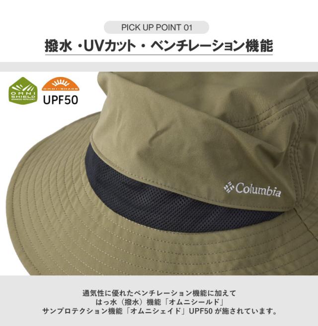 コロンビア Columbia イエロードックマウンテンバケット 帽子 オムニシールド 撥水 オムニシェイド UPF50 4ウェイストレッチ PU5775 正規品【Z7Q】【パケ1】【A】