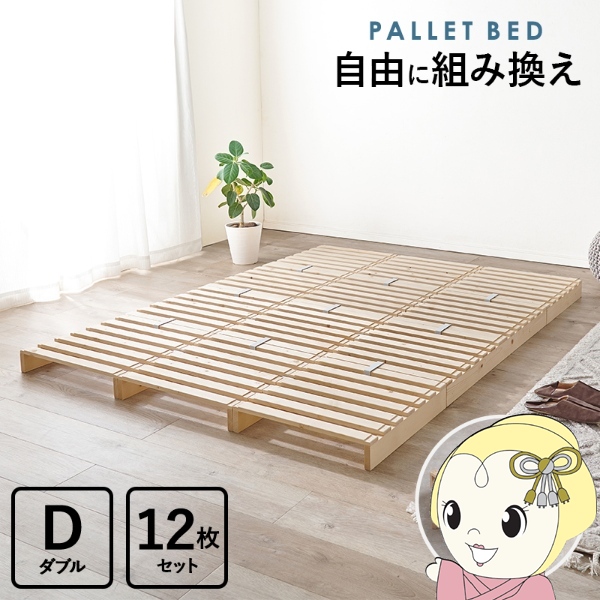すのこベッド ベッドフレーム ダブル 12枚セット 1枚幅50cm すのこ 収納 パレットベッド ステージベッド 分割式 木製 天然木 軽量 おしゃれ 簡単組立