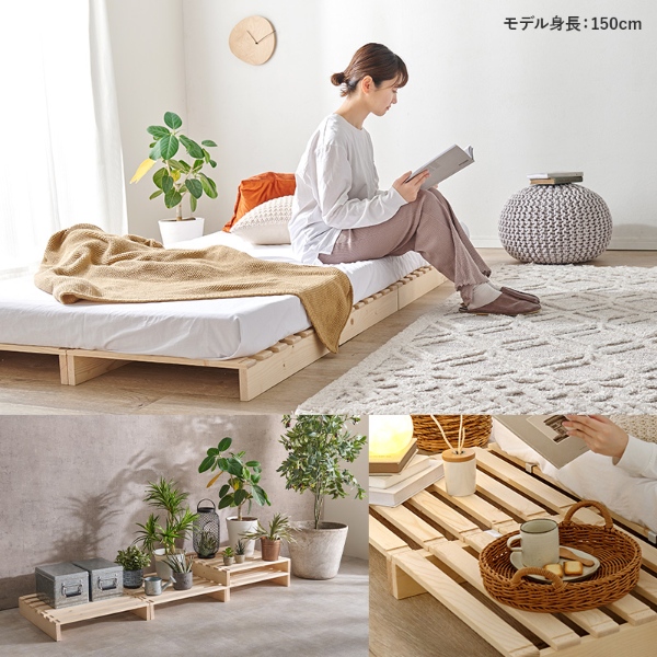 アレンジ自在!パレットベッド 木製 ベッド 完成品 ベッドフレーム すのこベッド すのこパレット 天然木 分割式 ステージベッド ローベッド ファミリーベッド おしゃれ 一人暮らし 来客用