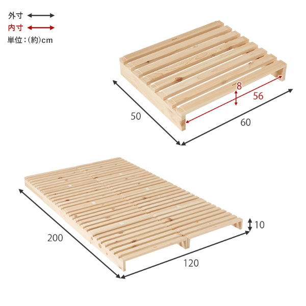 国産ひのきパレットベッド セミダブル セミダブルベッド ベッドフレーム すのこ パレット 天然木 分割式 収納 木製 すのこベッド ローベッド 来客用 おしゃれ パレットベット ひのき 檜 ヒノキ 一人暮らし ベット 完成品