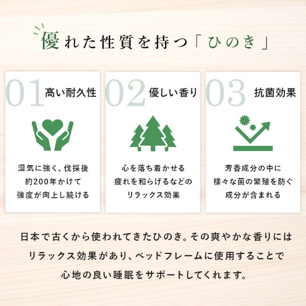 ベッドのフレームの素材:天然木(ひのき)