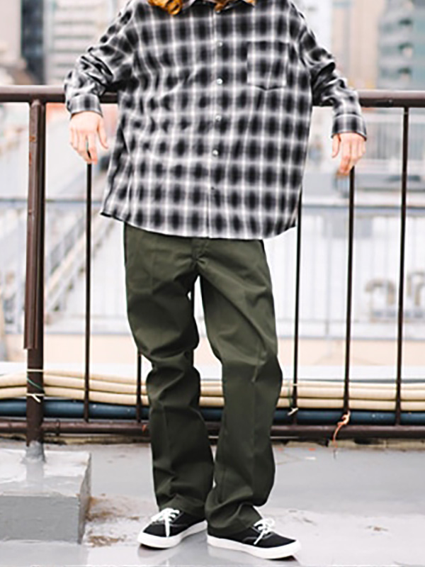 Dickies Original 874 WORK PANT ディッキーズ オリジナル 874 ワーク パンツ 【Dickies(ディッキーズ)】 1922年にアメリカ合衆国テキサス州で生まれたワークウェアブランド。 世界約100ヶ国で展開され、ワークウェア市場の約70%のウェアを持つ世界最大のワークウェアブランドとなっています。 ブランド名は創始者の1人であるE.E.ディッキーから由来しています。 全米各地の工場や米軍などに採用されるなど実用性を重視してきた歴史があり、ファッションアイテムとして愛用されています。 現在でも生地の丈夫さやディテールには定評があり、近年ではファッション雑誌などでも頻繁に紹介され、 アーティストや芸能人にも多数の愛好者がいることが知られてます。 Dickiesのアイコンでもあるオリジナルワークパンツ。 ハリのあるしっかりとした8.5オンスのTCツイル生地を使用し、汚れに強く、しわになりにくい。 センタープレスを施すことできちんと感があり、綺麗なシルエットを生み出します。 キレイ目もワークにも様々なシーンに対応できて、スッキリとはけるワードローブにマストな一着。 | |||||||||||||||||||||||||||||||||||||||||||||||||