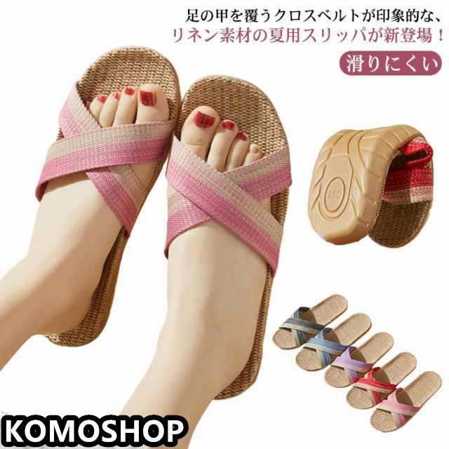 送料無料 スリッパ おしゃれ 夏用 ルームシューズ レディース メンズ 麻スリッパ かわいい シンプル 天然素材 亜麻 リネン 室内履き 部屋履き 軽量 涼しい 蒸れない 春夏 自宅用 来客用 滑りにくい ベランダ サンダル 男女兼用