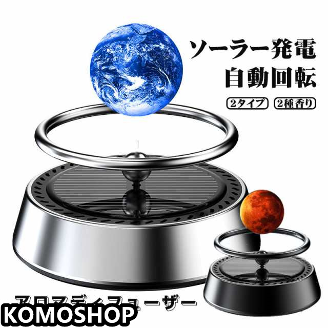アロマディフューザー 車用 芳香剤 自動回転 車 父の日 プレゼント 実用的 クリエイティブ ソーラー パネル リビング インテリア デコレーション 車飾り 空気清浄機 消臭 合金 カーアロマ 車香水 ディフューザー 除菌 ブラック シルバー