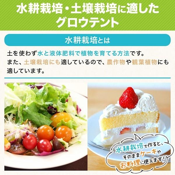 水耕栽培 土壌栽培 に適した室内用グロウテント水耕栽培とは、土を使わず水と液体肥料(養液)で植物を育てる方屋外と遮断することで、養液を衛生的に管理でき、健康的な無農薬植物が育ちます。土壌栽培にも適しているので、農作物?観葉植物に適しています。土耕栽培に比べ、成長のスピードが早く、殺虫剤も不使用安全でおいしい無農薬植物を育てられます。・ 野菜 果物 や ハーブ葉菜類 : リーフレタス ほうれん草 三つ葉果実野菜類 : ミニトマト イチゴハーブ類 : パセリ バジル パクチー・観葉植物 多肉植物 ・エディブルフラワー パンジー マリーゴールド ペニチュア〔商品詳細〕サイズ:約 60×60×120cm<br>素材:アルミ系複合材付属品:取扱説明書(英語)自作 花 トマト 溶液栽培 養液栽培 ハイドロカルチャー グロウテント グリー